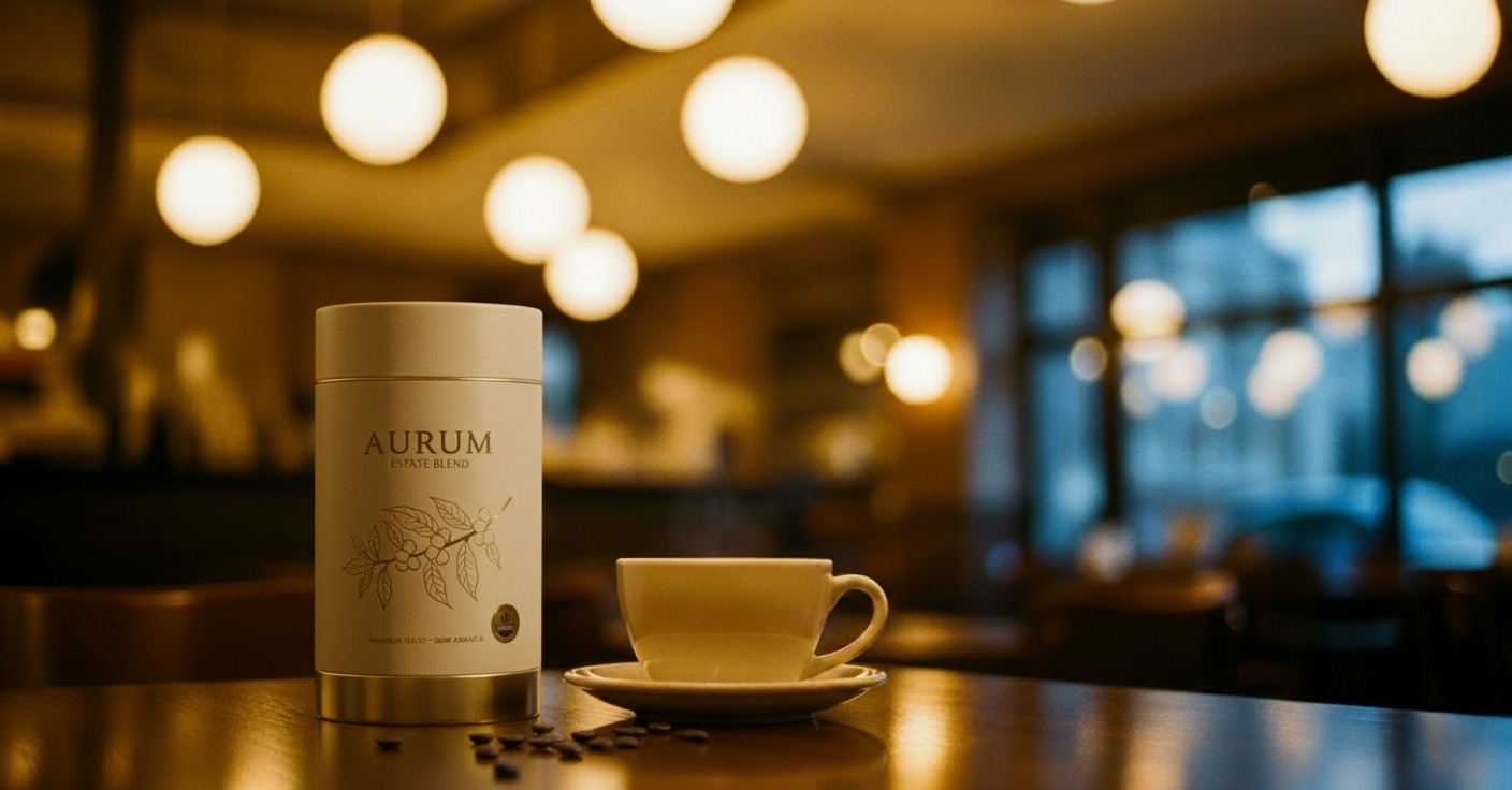 The product (AURUM coffee tin) was designed and placed in-scene using Gemini Nano Banana, then animated with Google Veo 3.1 Fast.