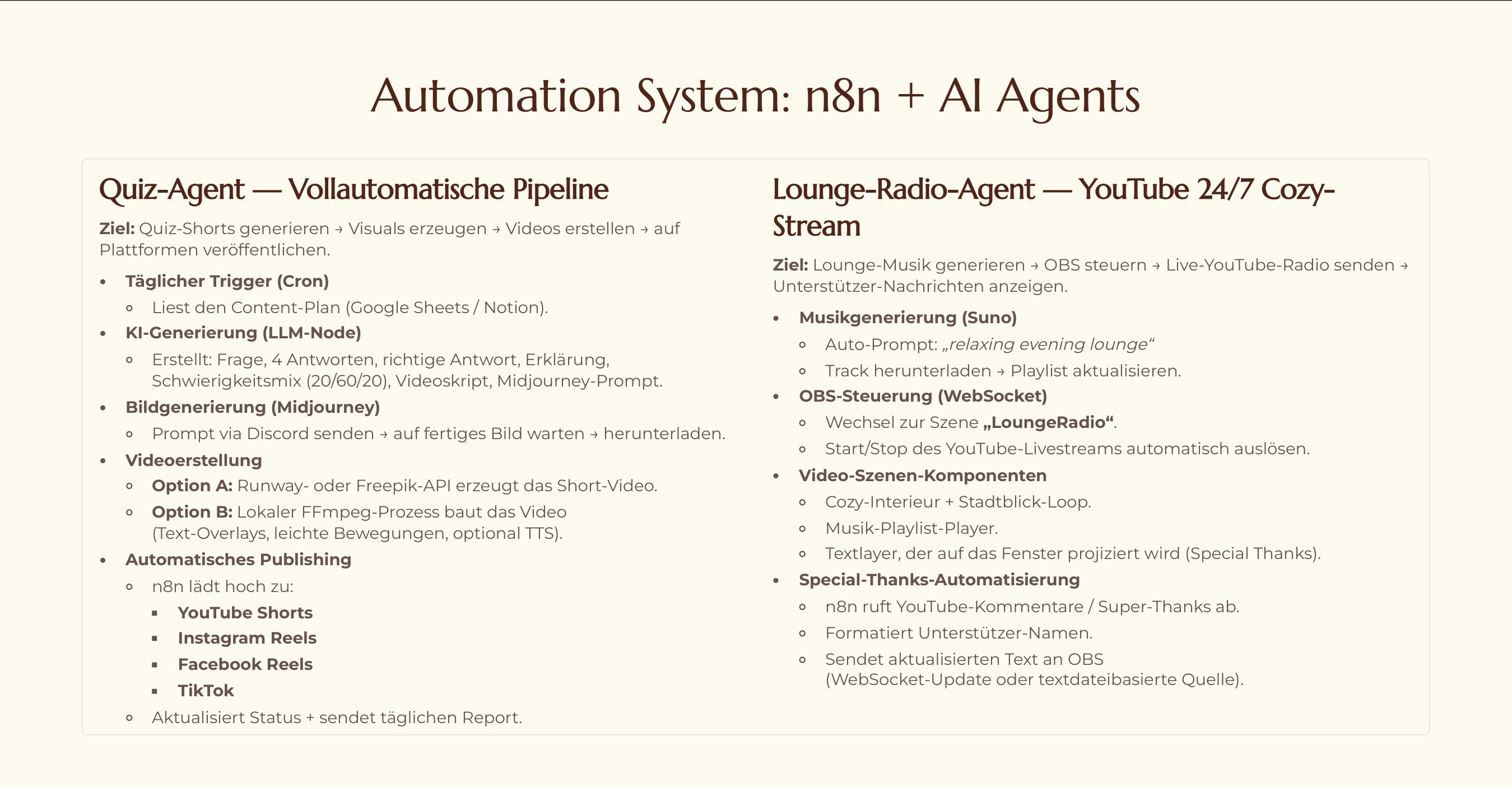 This project was developed as part of the KISOME program. The goal: build a faceless, ethical, sustainable content brand operating on a 10-hour/week budget — generating quiz and cozy aesthetic content across TikTok, Instagram, and Facebook using AI tools.